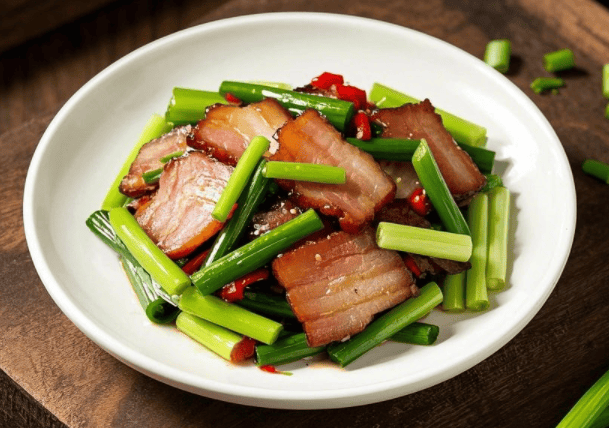 做法:腊肉切片,蒜苗切段备用。锅里放油,烧热后倒入腊肉片翻炒至出油,加入蒜苗段继续翻炒。加盐、生抽调味,炒至蒜苗变软即可出锅。这道菜香气扑鼻,腊肉和蒜苗的搭配更是绝妙,吃了还想吃!
