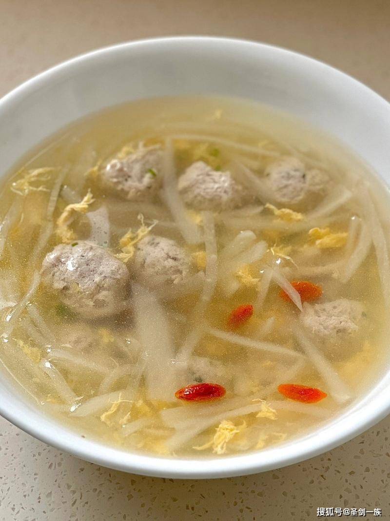 5、再煮五六分钟,丸子全部浮起后,加入萝卜丝,萝卜煮熟后加入少许盐胡椒粉调味,撒上香菜段拌匀即可。