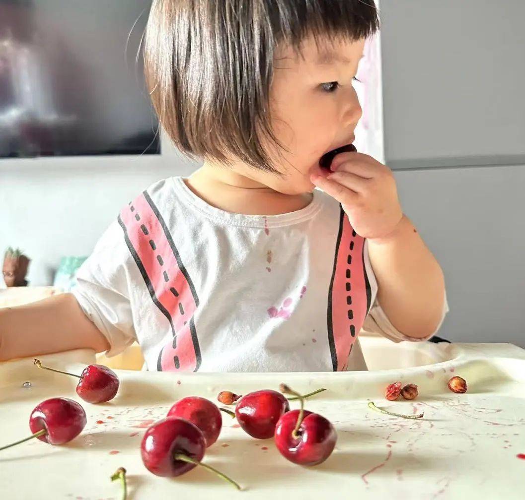 在病毒肆虐的冬季,给孩子吃车厘子真的是很优秀的选择;就算把衣服染色了,也是值得的!