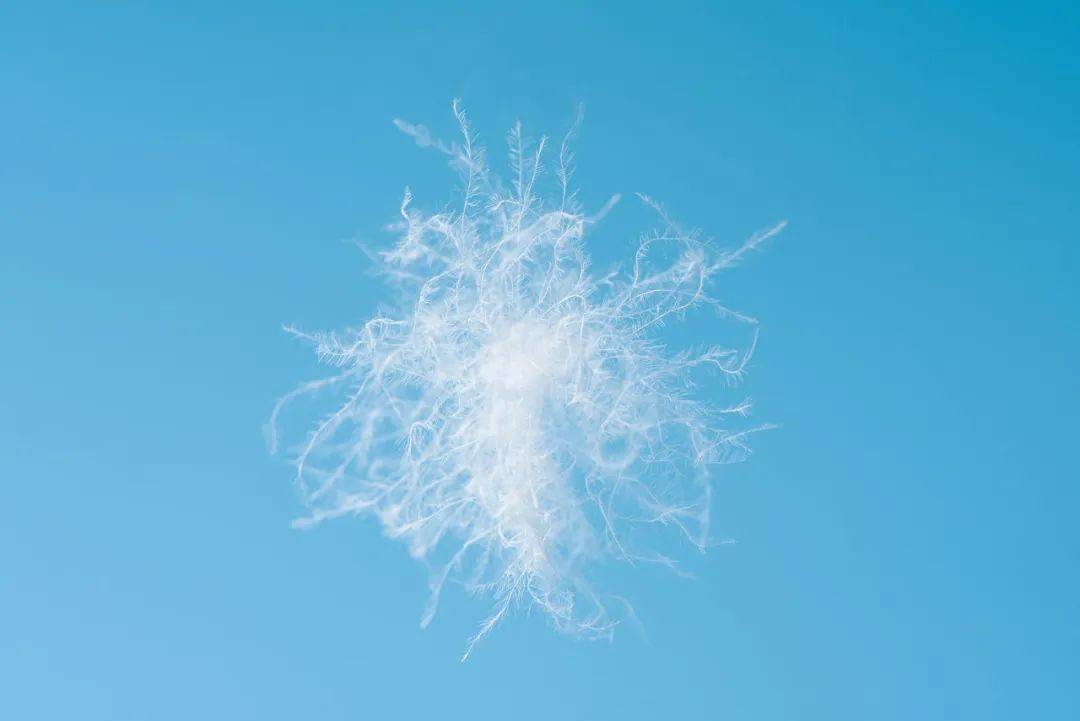 绒子,是一个绒核向四周发射多根丝状物形成的立体结构,从外观看上,就像一个大朵蒲公英,呈现出立体的球状结构。