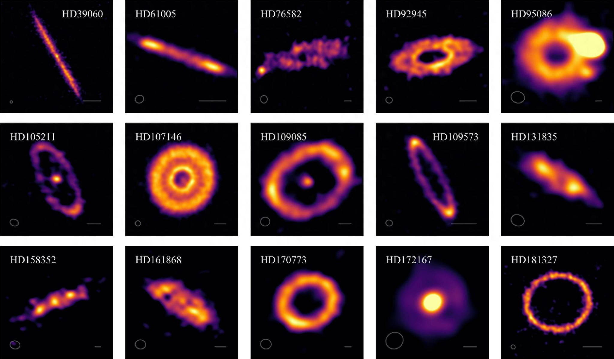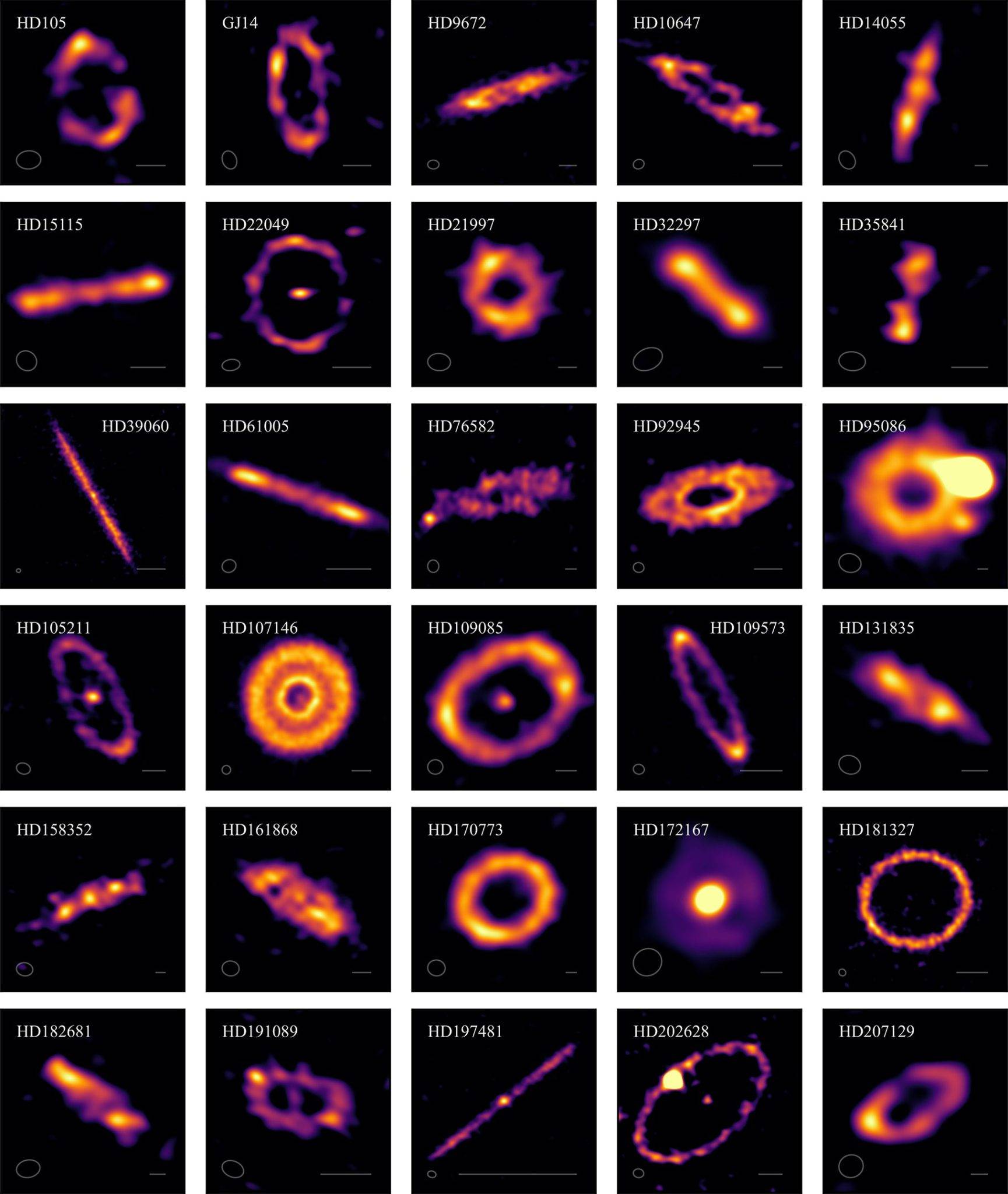 埃克塞特大学皇家学会研究员巴斯蒂安·马里诺(Sebastián Marino)博士是这项研究的合著者,他补充说:“这些图像揭示了带结构的显著多样性。有些是窄环,就像我们太阳系埃奇沃斯柯伊伯带这样的‘带’的典型图片一样。但其中更多的是宽的,可能更适合描述为‘盘’而不是环。”