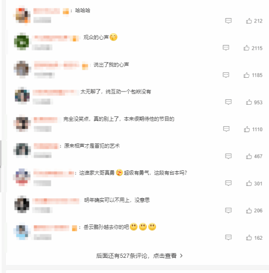 对此网友们纷纷表示,这真是说出了观众们的心声:“太无聊了,纯互动一个包袱没有”“明年确实可以不用上了!”