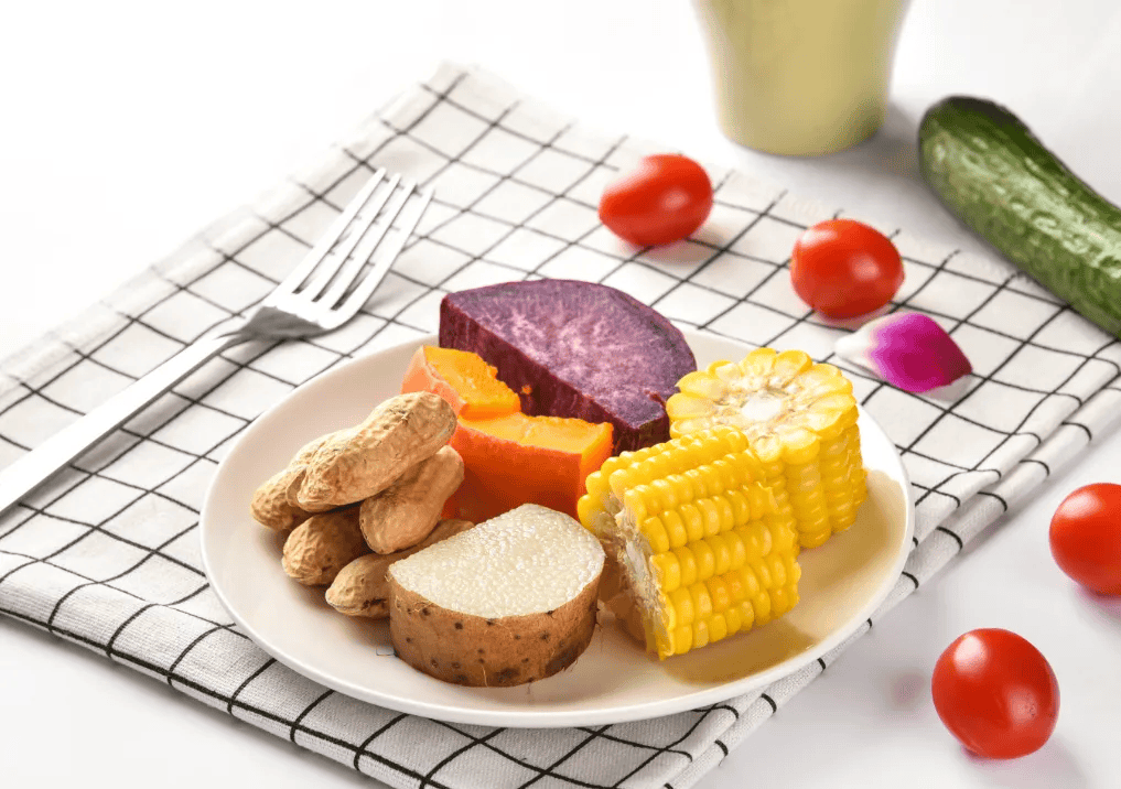 春节期间,人们大都习惯吃精米白面,可以在精白米面中适量加入糙米、全麦、玉米、红薯等粗杂粮,增加膳食纤维和B族维生素的摄入。推荐每人一天摄入谷类200~300g,薯类50~100g,其中谷类包括全谷物和杂豆类50~150g。选择颜色丰富的谷物,用红薯、南瓜、芋头、玉米、紫薯等粗粮做个五谷丰登,这道菜既美观又营养。