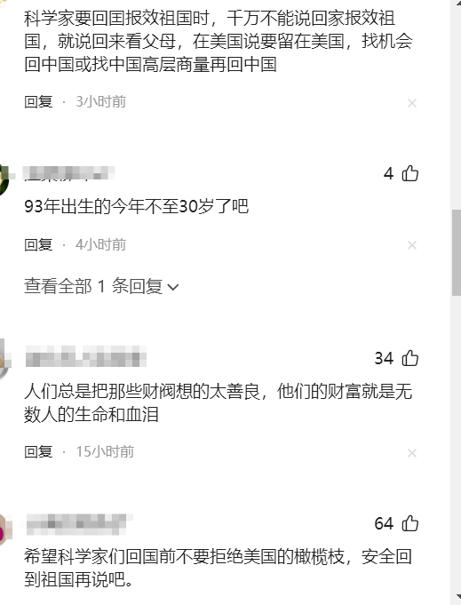 4,希望科学家们回国前不要拒绝美国的橄榄枝,安全回到祖国再说吧。