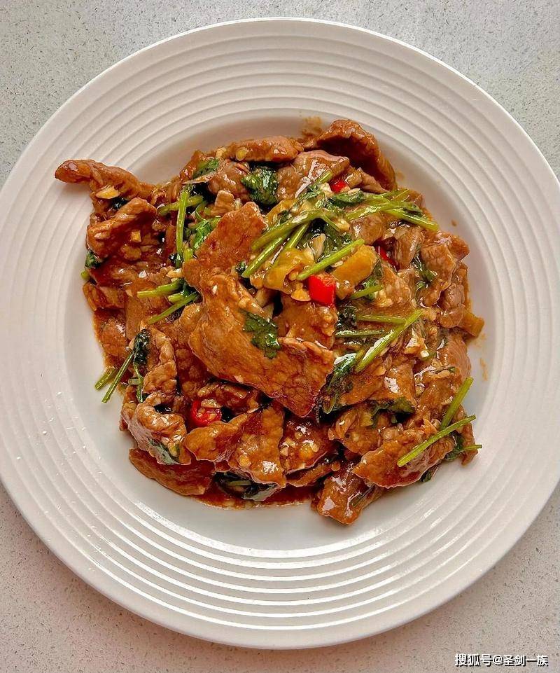 3. 炒牛肉:锅中加入适量食用油,油热后先放入腌制好的牛肉片,用中大火快速翻炒。炒至牛肉变色,边缘微微焦黄时,立即盛出备用。