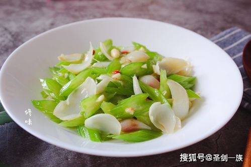材料:百合 1 个、西芹 1 根、胡萝卜半根、盐适量、鸡精适量