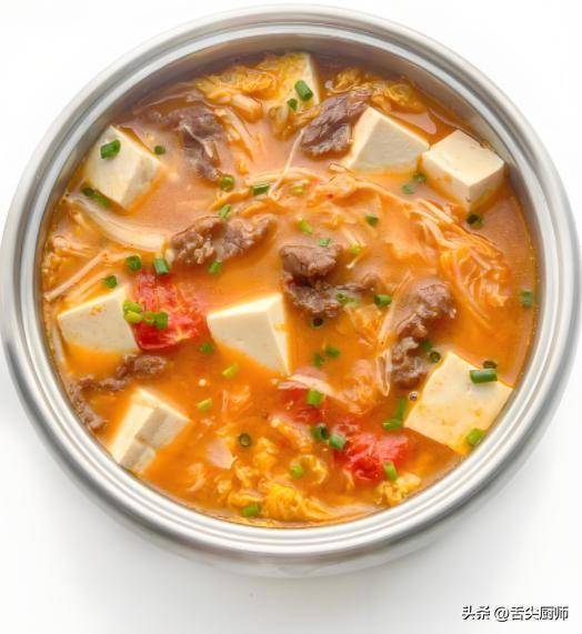 7. 调味和收汁:待汤汁渐少时,加入适量的盐进行最后调味,轻轻翻动锅中的材料,让牛肉和豆腐更加入味。可以根据口味加入一些胡椒粉调节味道。