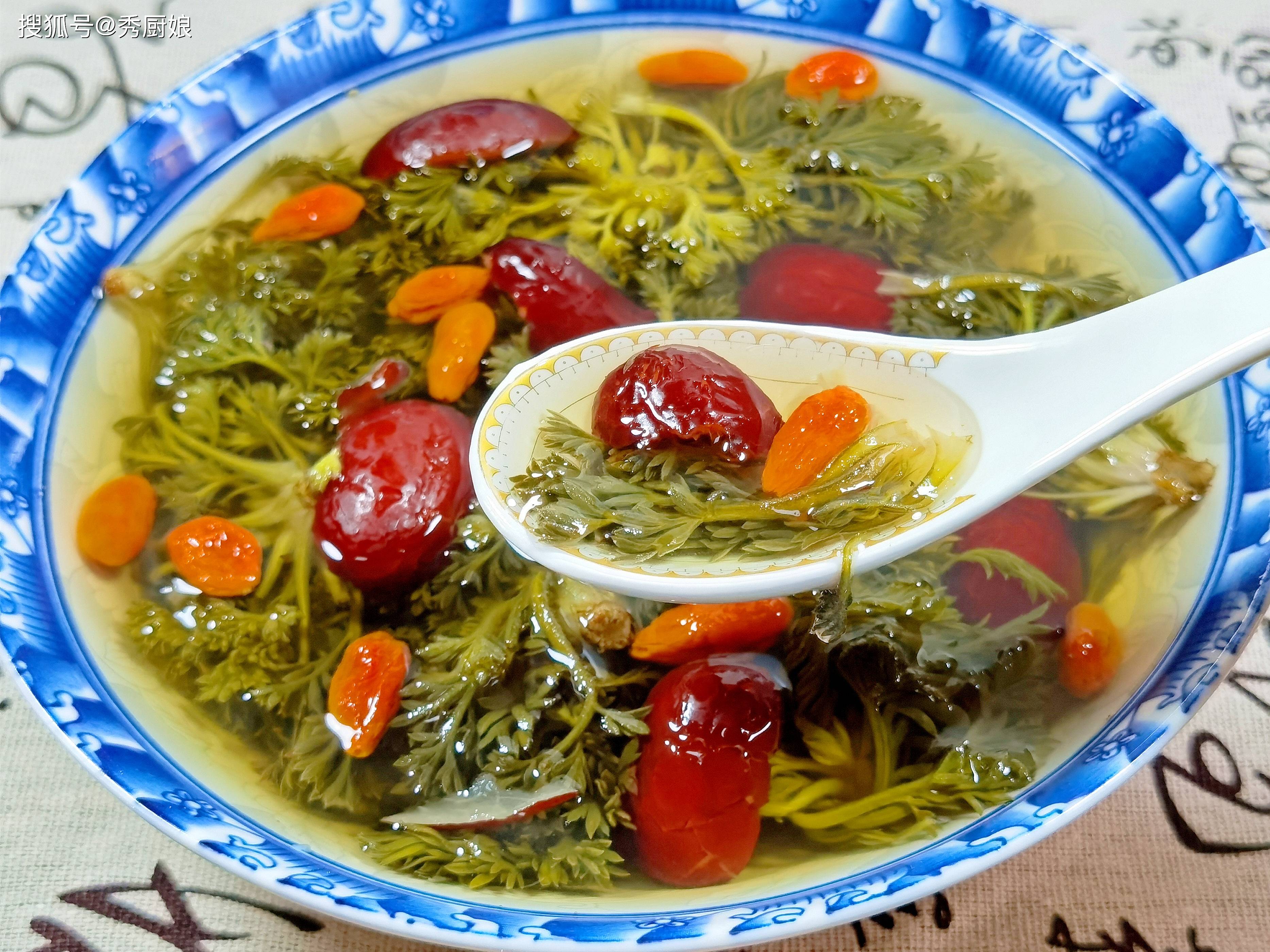点评:此茶甘甜微苦,红枣和枸杞中和茵陈的寒性,既能清肝火,又能补气血,早晚一杯效果尤佳。