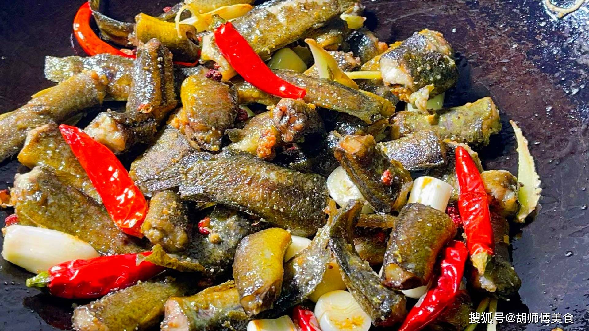 第二步:锅中放入一勺油,等油烧热后,撒上一点点食盐后,把泥鳅放入锅中,中大火将泥鳅煎一会儿,直到将泥鳅两面都煎成浅黄色,然后把蒜籽、豆瓣酱、花椒、干辣椒放入泥鳅中炒香。